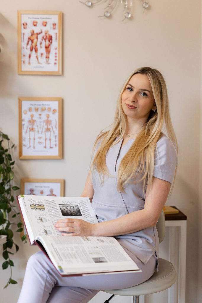 - Jestem fizjoterapeutką z kilkuletnim doświadczeniem, magistrem fizjoterapii, absolwentką uczelni w Szczecinie. Każdą współpracę rozpoczynam od rzetelnej diagnostyki — analizuję nie tylko objawy, ale także styl życia, poziom stresu oraz codzienne nawyki, aby dotrzeć do rzeczywistej przyczyny dolegliwości.